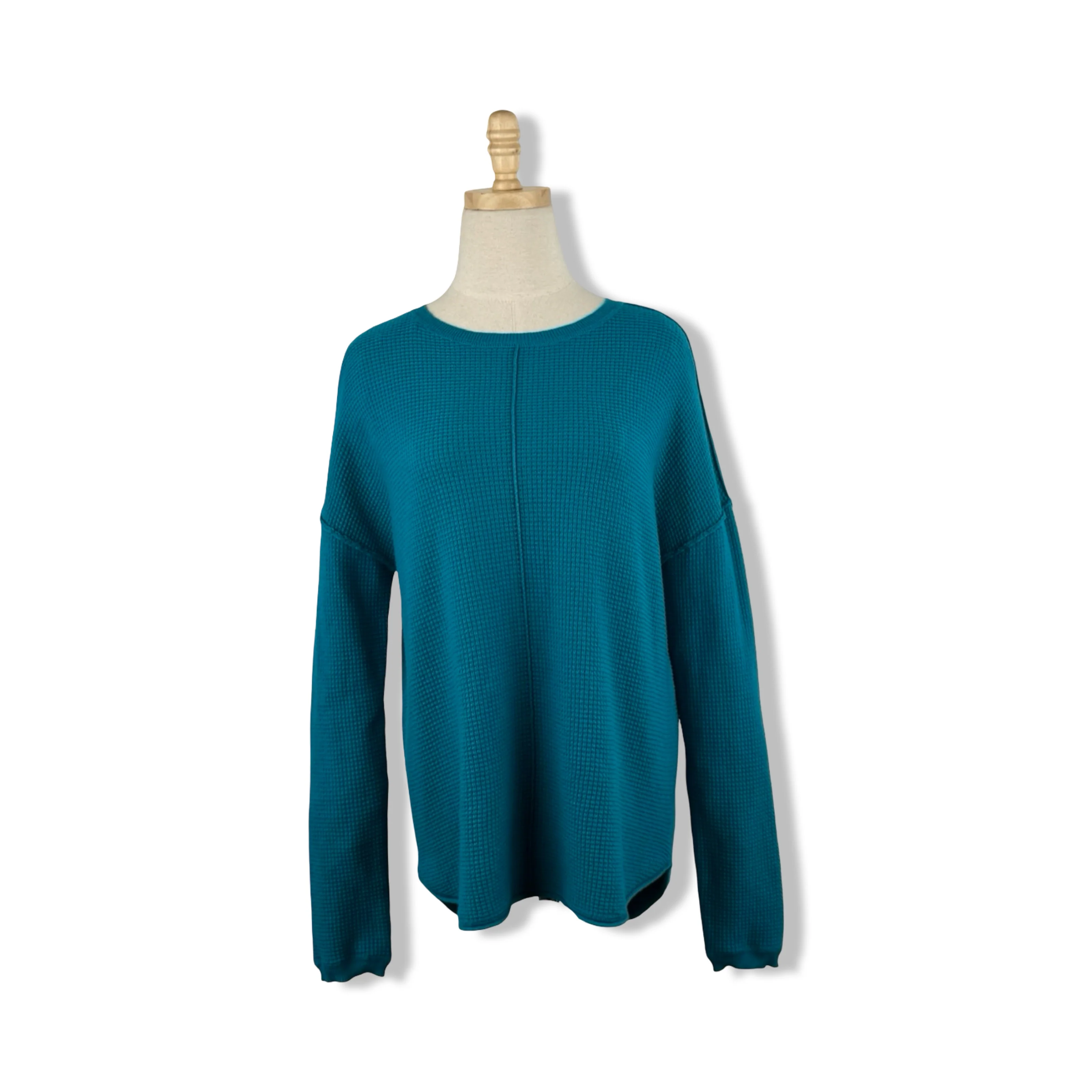 - Crewneck, waffle knit, pullover. Size not listed. Looks like size Medium. Please check measurements