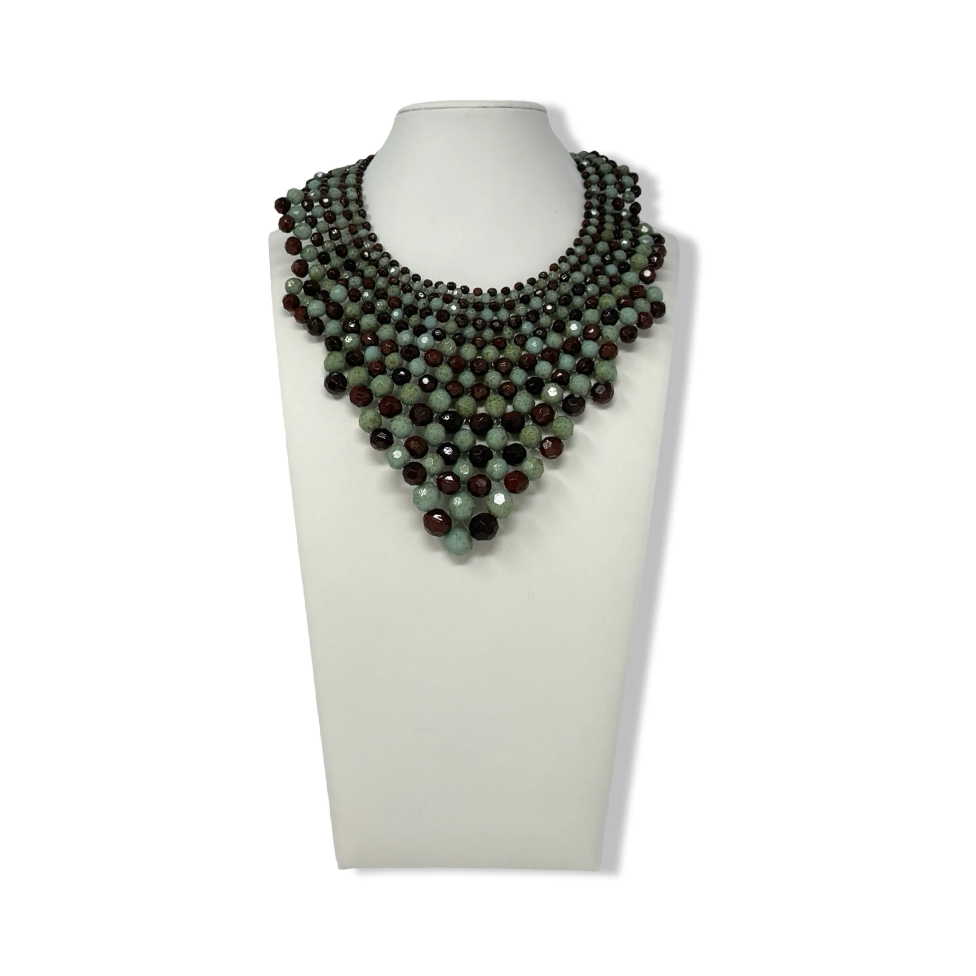 - Layered beaded necklace with lobster clasp