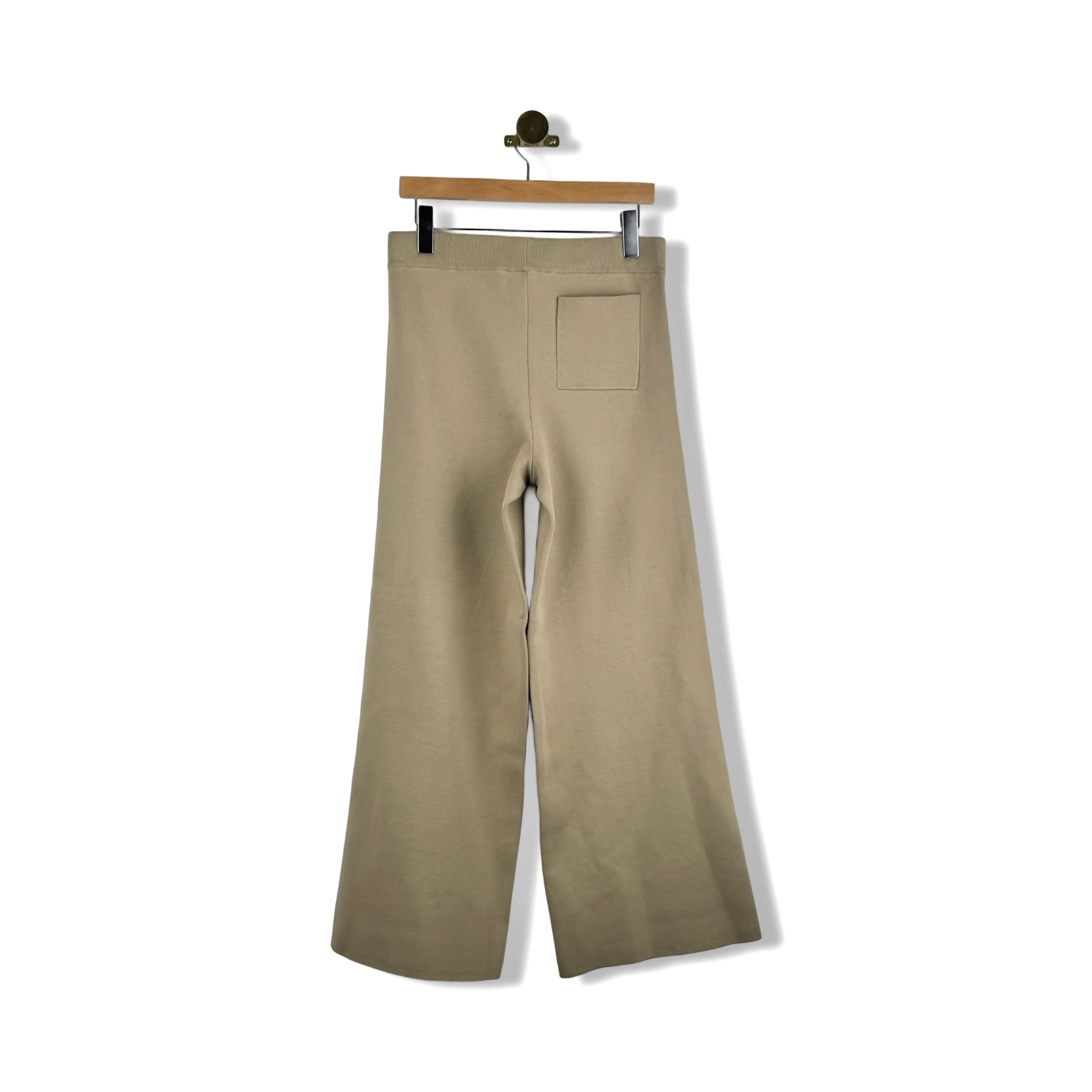 - Soft wide leg pants with elastic waistband and zip fly with button closure.